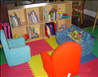 Large playroom full of natural light. Developemental toys and books.